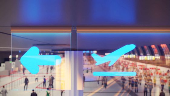 Eindresultaat van montage van het I10 glasprofiel als een vast element bevestigd aan een verticale LED STRIP profiel opbouw met behulp van speciale eindkappen met ondersteuning