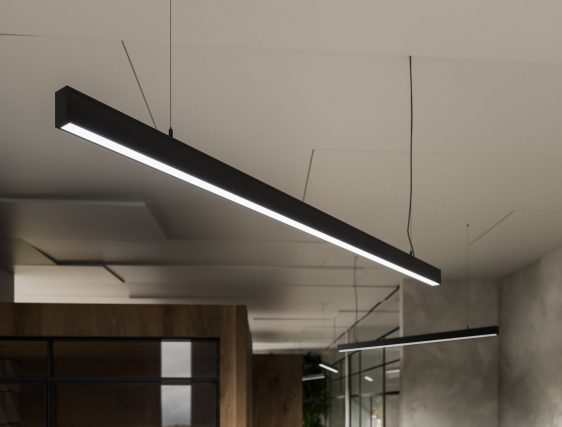 Hangend LED-systeem met een voeding die verborgen is in de behuizing (tot 200W). Het unieke ontwerp maakt onderhoud en vervanging van de voeding mogelijk zonder de armatuur van de ophanging te verwijderen. Het profiel heeft een scharnierend openingssysteem, wat alle onderhoudstaken vereenvoudigt.