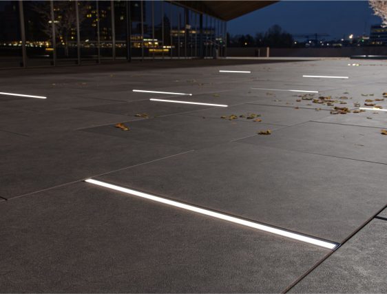 Oprit, verzonken LED-systeem, hermetisch en draagbaar tijdens voertuigpassage tot 3,5 ton. Ontworpen voor installatie op opritten, trottoirs en andere gebieden die sterke verlichtingslijnen met IP68-bescherming vereisen.