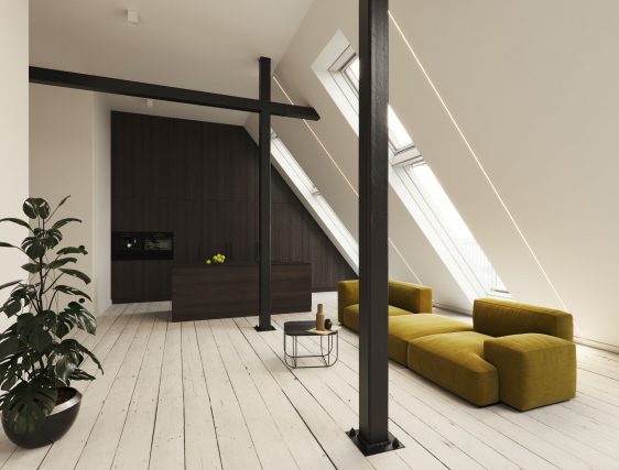 Eindresultaat van de installatie van het verzonken profiel B met een BASIC-afdekking