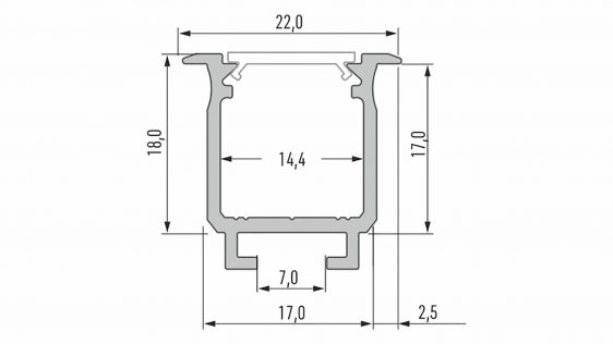 LUMINES W is een inbouwprofiel, ideaal voor verlichting in keukens en winkels. Geschikt voor verlichting van planken, aanrechtbladen en trappen.