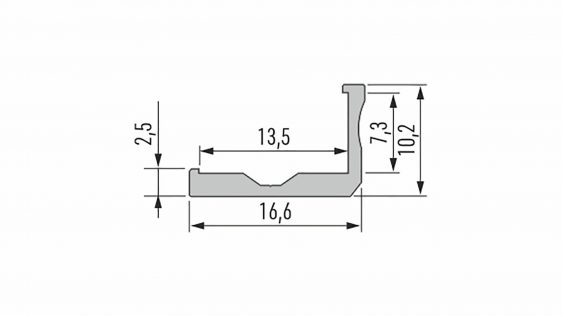 Profiel F is een smallere versie van profiel E. Het is ontworpen voor maatwerkoplossingen voor de installatie van verlichting. Door het minimalistische uiterlijk is het een interessante aanvulling op designprojecten en biedt het veel mogelijkheden voor het monteren van LED-strips.