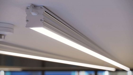 Eindresultaat van TALIA-profiel montage met DOUBLE afdekking en verborgen voeding in TALIA M2 montageprofiel.